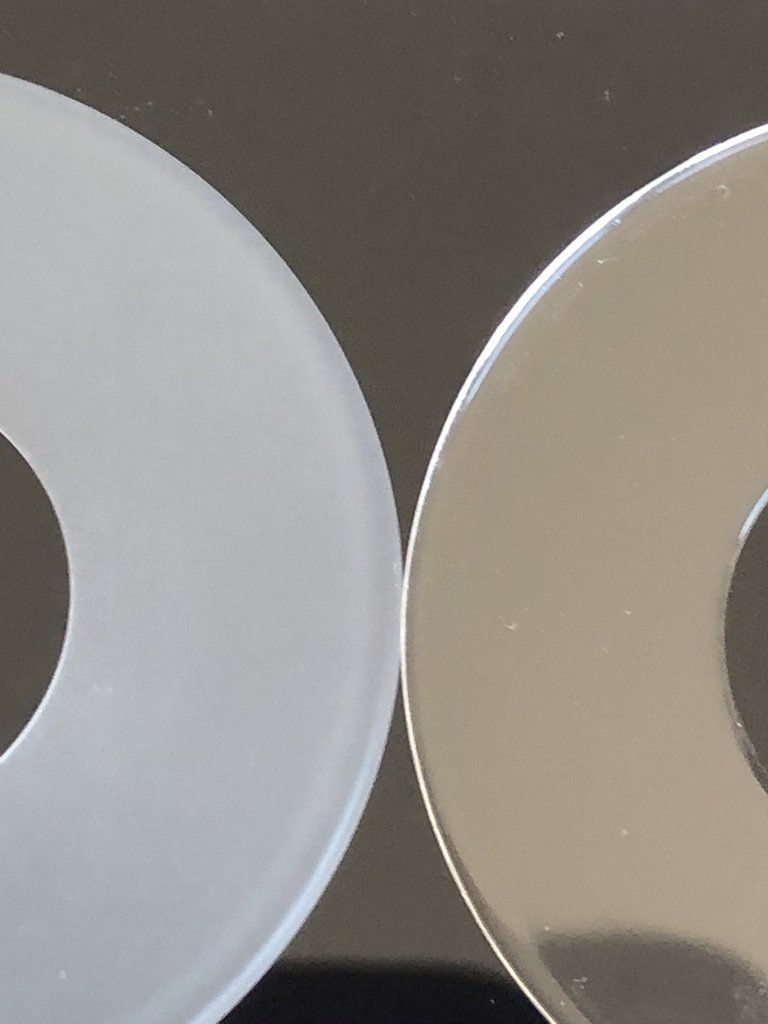 The acrylic components were processed with our special nuggets for satinizing surfaces. Processing is possible in all common grinding systems. It is a dry process.
